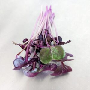 El rábano morado es mejor utilizado para preparaciones saladas. Esta pequeño brote agrega un color, sabor y textura vibrantes a una variedad de platillos y canapés salados. Es mejor usarlo crudo, como adorno comestible. Combina especialmente bien con queso, incluyendo feta, queso de cabra y mozzarella, así como vinagre balsámico, remolacha, hinojo, peras y carne asada. Además, se puede usar para vestir sopas, ensaladas, sándwiches y guisos. Para hacer una ensalada de micro verduras picante, el rábano micro se puede mezclar con otras verduras picantes, como Mizuna o Mustazas. Se sugiere combinar este microgreen con platillos grasos como el bistec o el atún.
